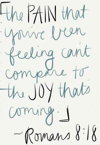 Romans 8:18 – “The pain that you’ve been feeling, can’t compare to the joy thats coming.”